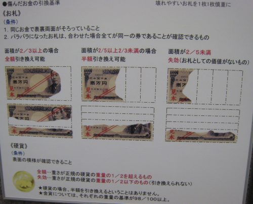 最後に,上記で記載した破損紙幣などの交換ルールが展示されていましたので 紹介します.