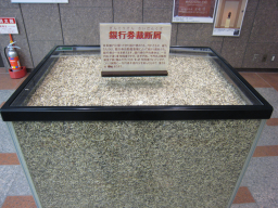その後9ヶ月は放置状態…高松に行く機会は平日にはなかなか訪れないものです. しかしいよいよそのチャンスはやってきました.高松サンポートで開催の研究会. 駅近くのホテルから徒歩で数分のところに日銀高松支店はありました. 換金申し込みのフォームに記入するとすぐに全額換金してくれました.感激です. 店内はいろいろと他に面白い展示がありました.